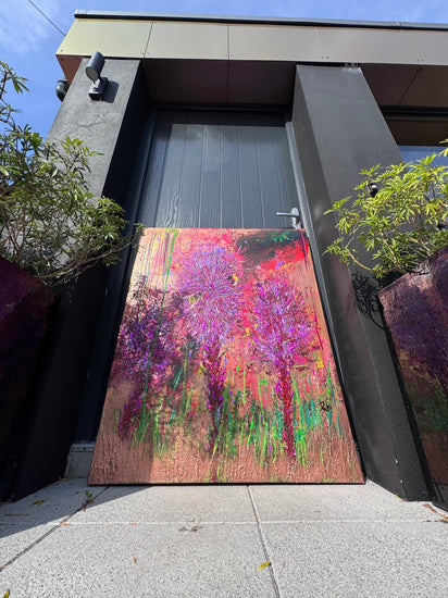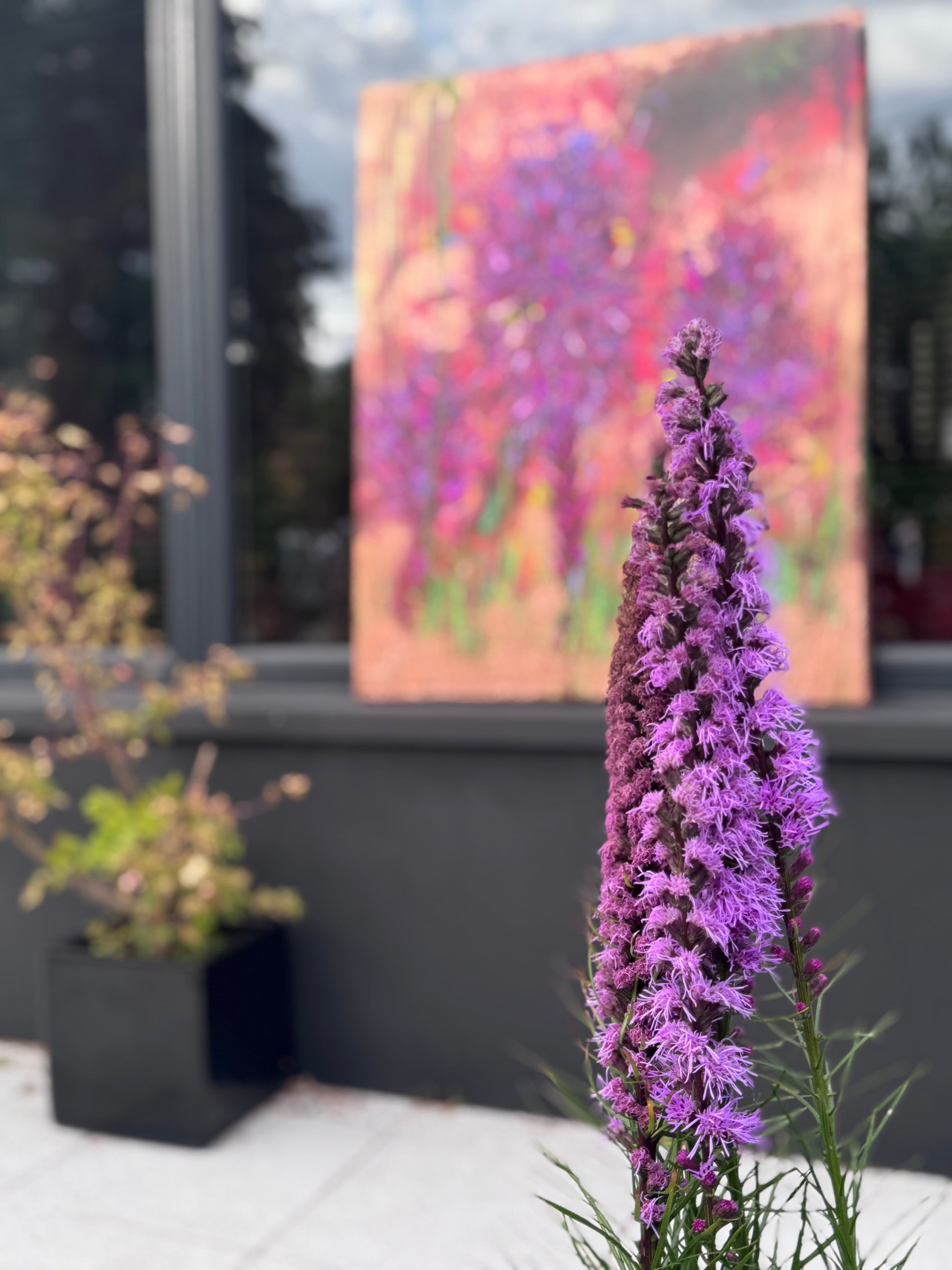 This painting is a riot of colour. I hope it captures the unique nature of these beautiful plants that change over the summer months, of the vibrancy of the flowers and also of the copper tones of my home.