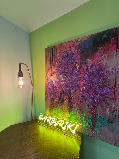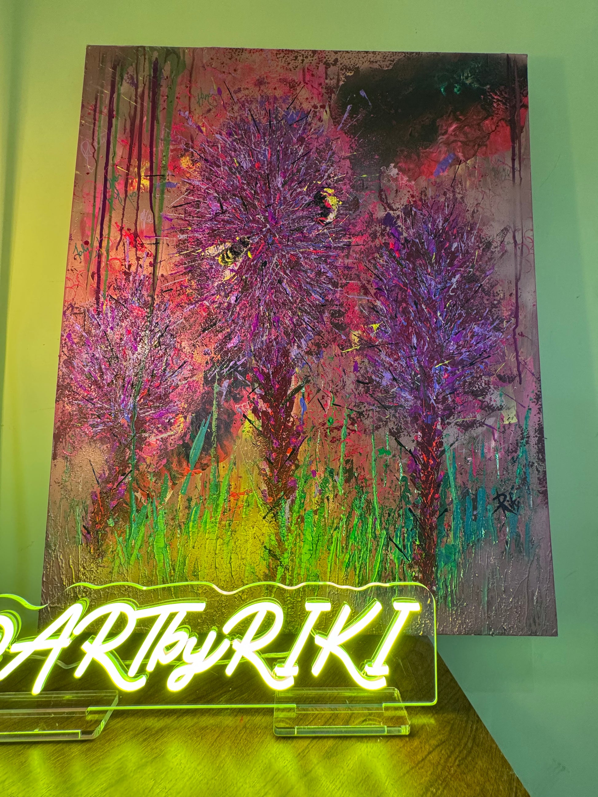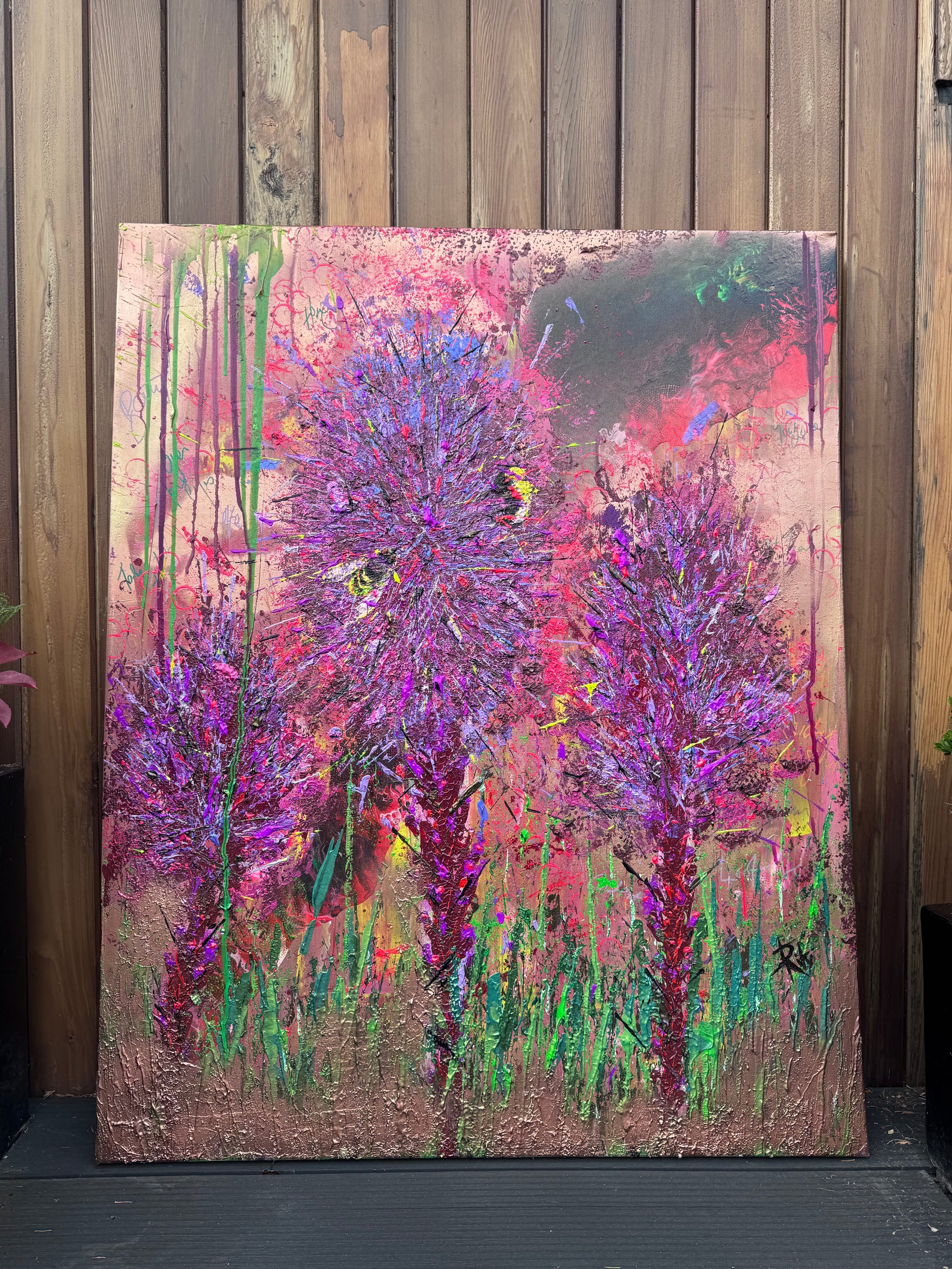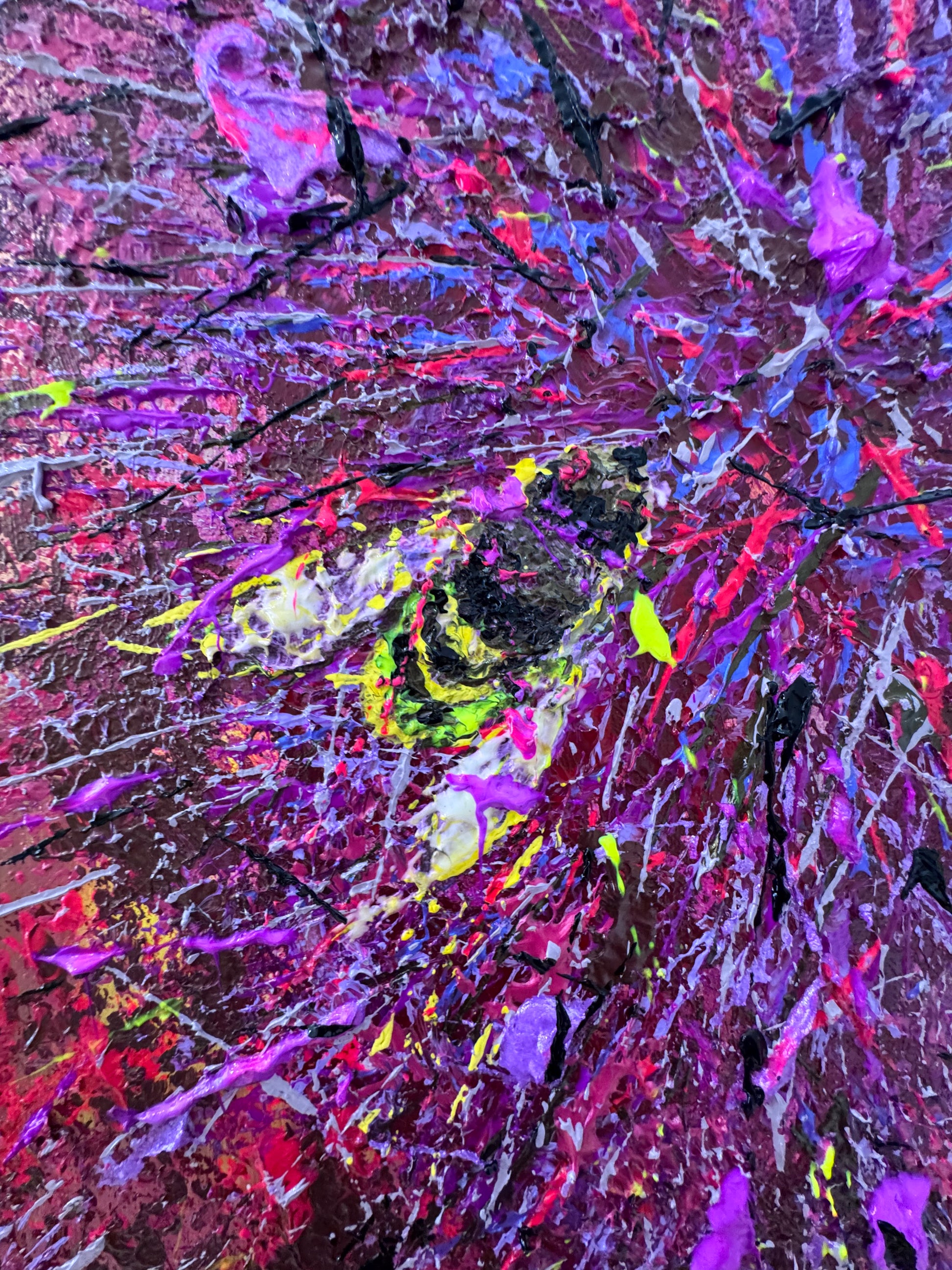 - Acrylic, pouring acrylics, spray paint, mixed medium