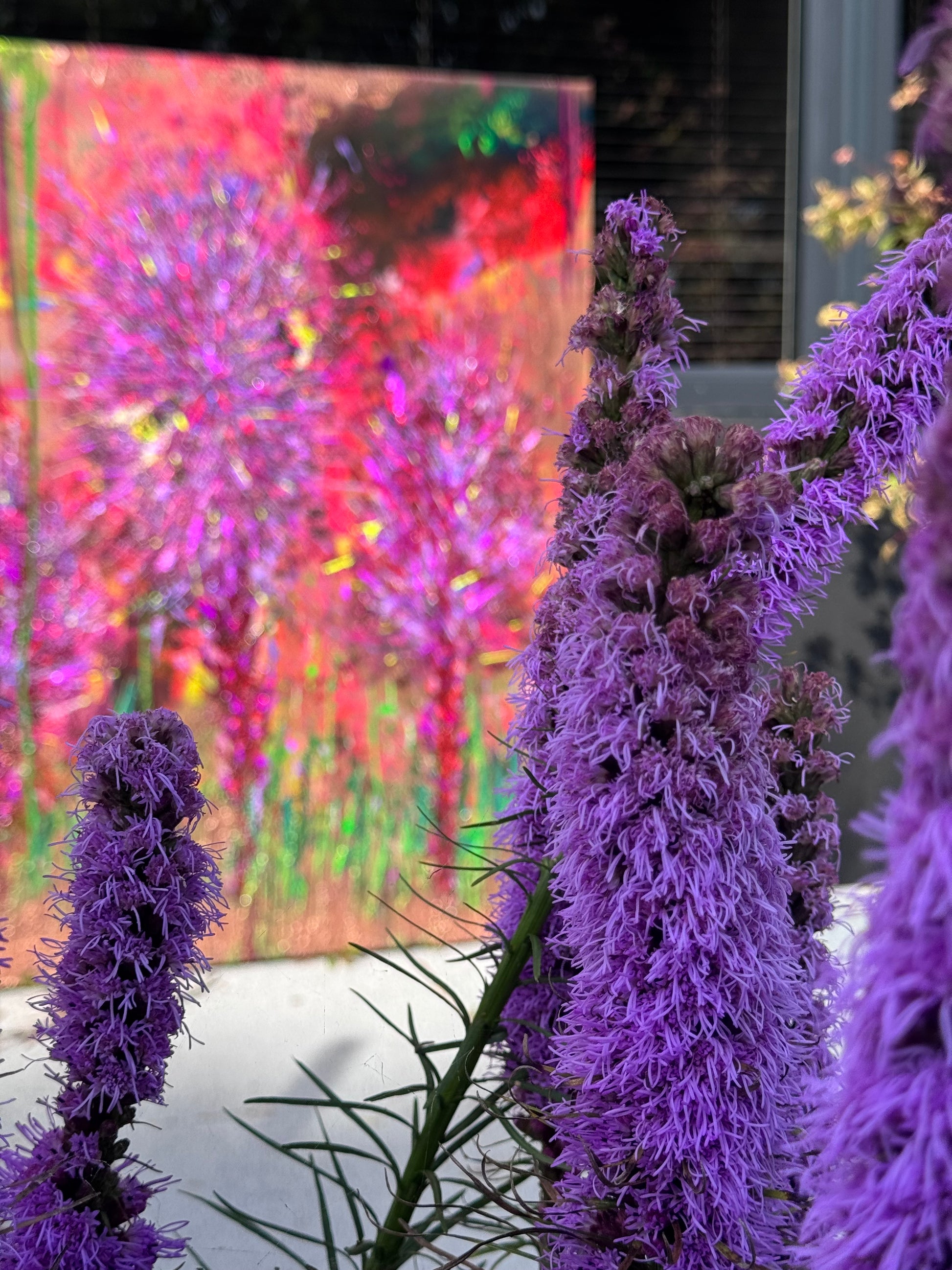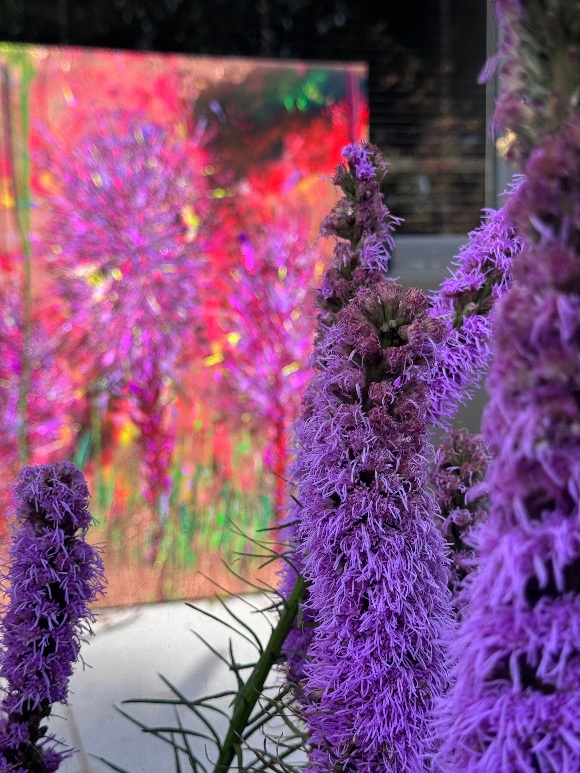 This beauty welcomes me home from work every day. I have these gorgeous blazing flowers, known as Liatris spicata, or commonly known as blazing star or gayfeather, at my front door.