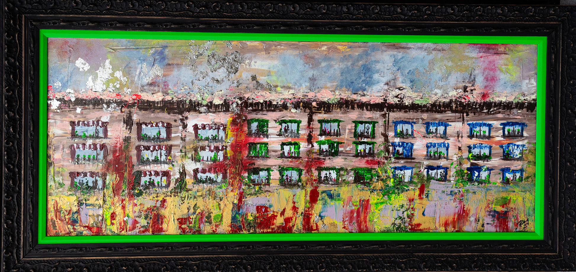This painting is all about the vibrancy of city living. I was lucky enough to go to Palma last year on a girls’ trip with my three darling friends. One of our best decisions in a long time was to ensure that we always tried to go away for three or four nights to somewhere in the world every October. And in 2024, that city was Palma.