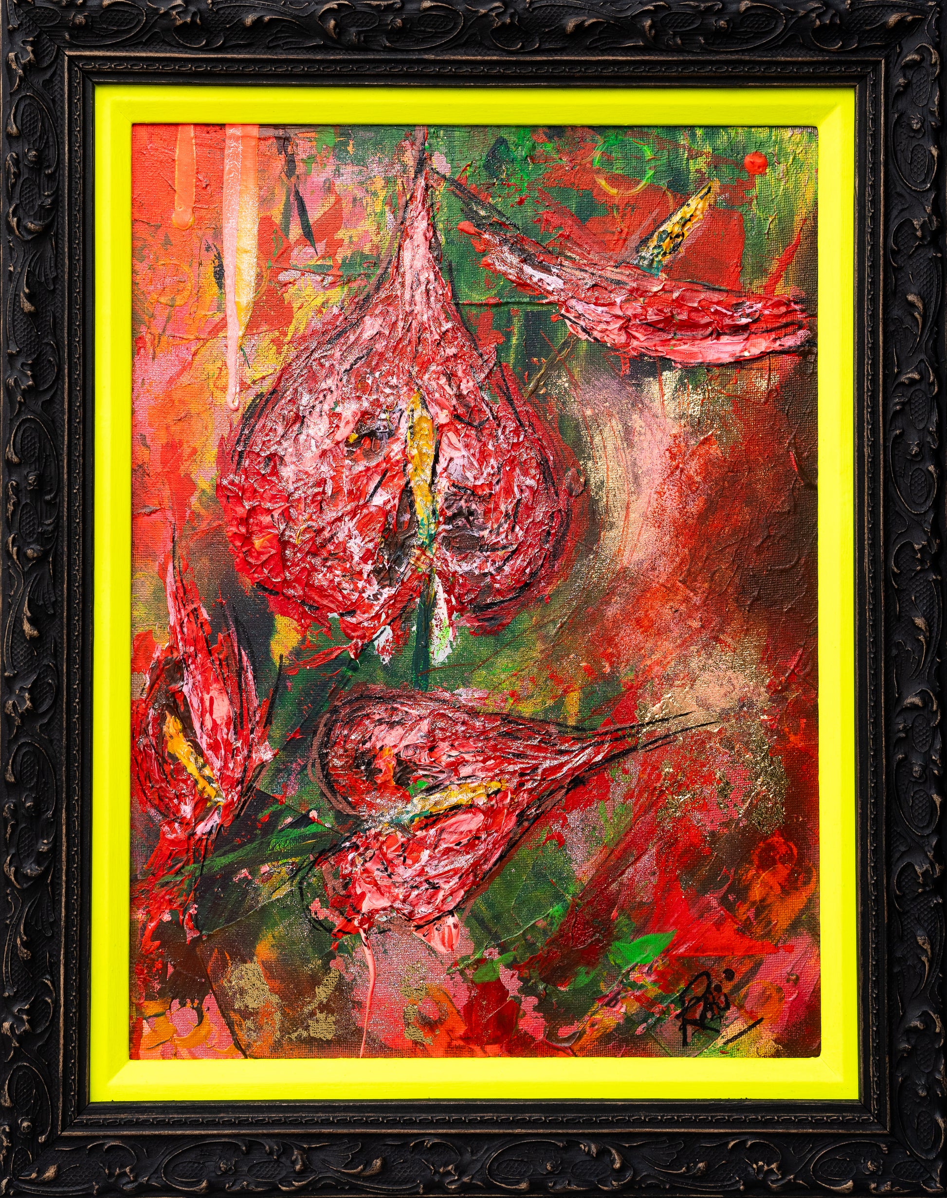 When thinking about what I would paint, I just love Anthuriums and how they make me smile. They're also known as the Flamingo flower, so we have Flamingo number 1 and Flamingo number 2; they're sisters, not twins, and I love them both.