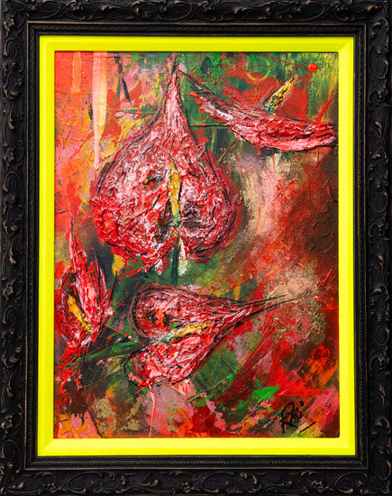 I've added some gold leaf to the paintings, and also texture, to capture the energy I felt when painting these pieces. There’s a richness to the colours and texture to the flowers.