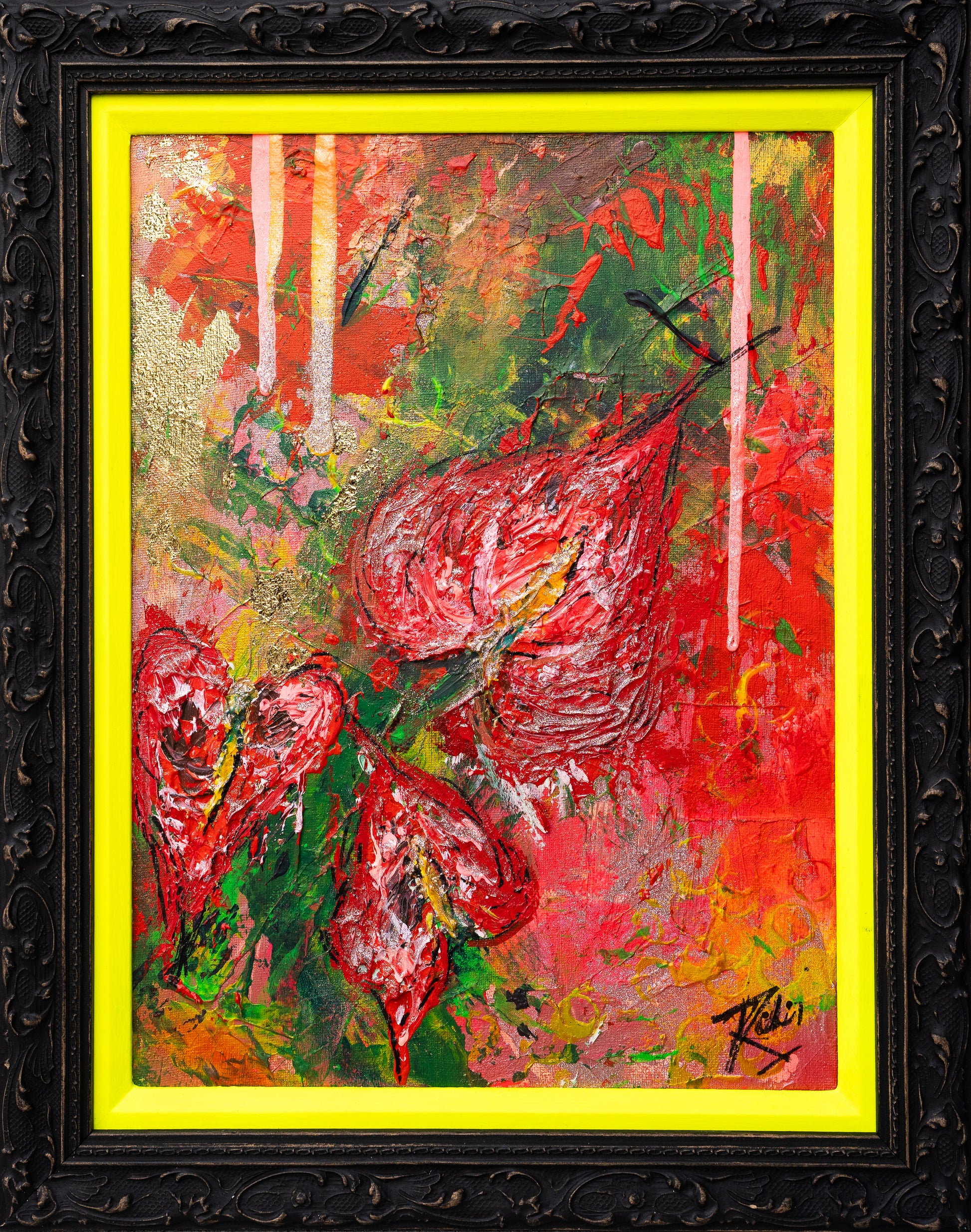 When thinking about what I would paint, I just love Anthuriums and how they make me smile. They're also known as the Flamingo flower, so we have Flamingo number 1 and Flamingo number 2; they're sisters, not twins, and I love them both.
