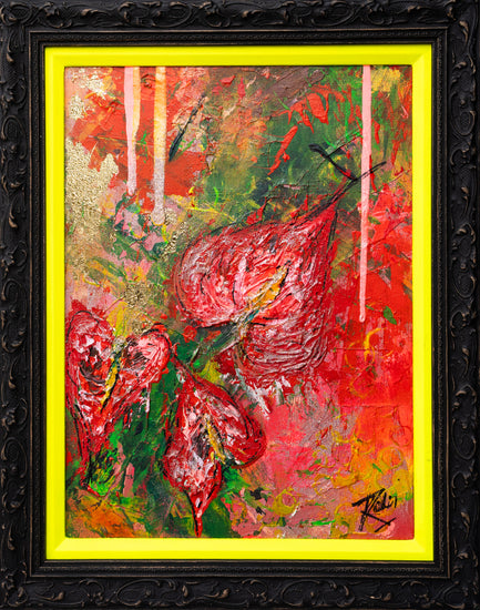 I paint things that bring me joy, and Anthurium plants have always been a showstopper. I've loved them since I owned my first home; this is what my mum used to buy me. I love anthurium flowers in single stems, coupled together, or with foliage. There’s a plastic nature to them…a perfect look but always with little imperfections too. Their glossy finish combined with that thick, vibrant centre stem just really packs a punch.