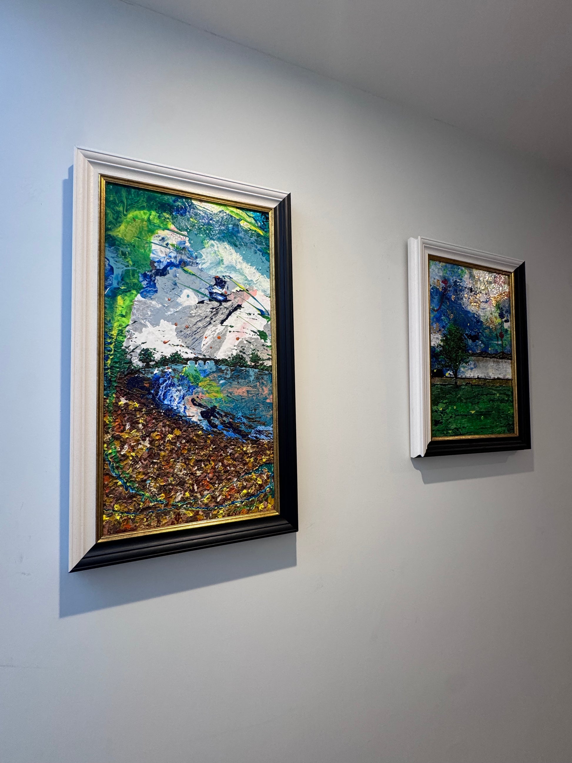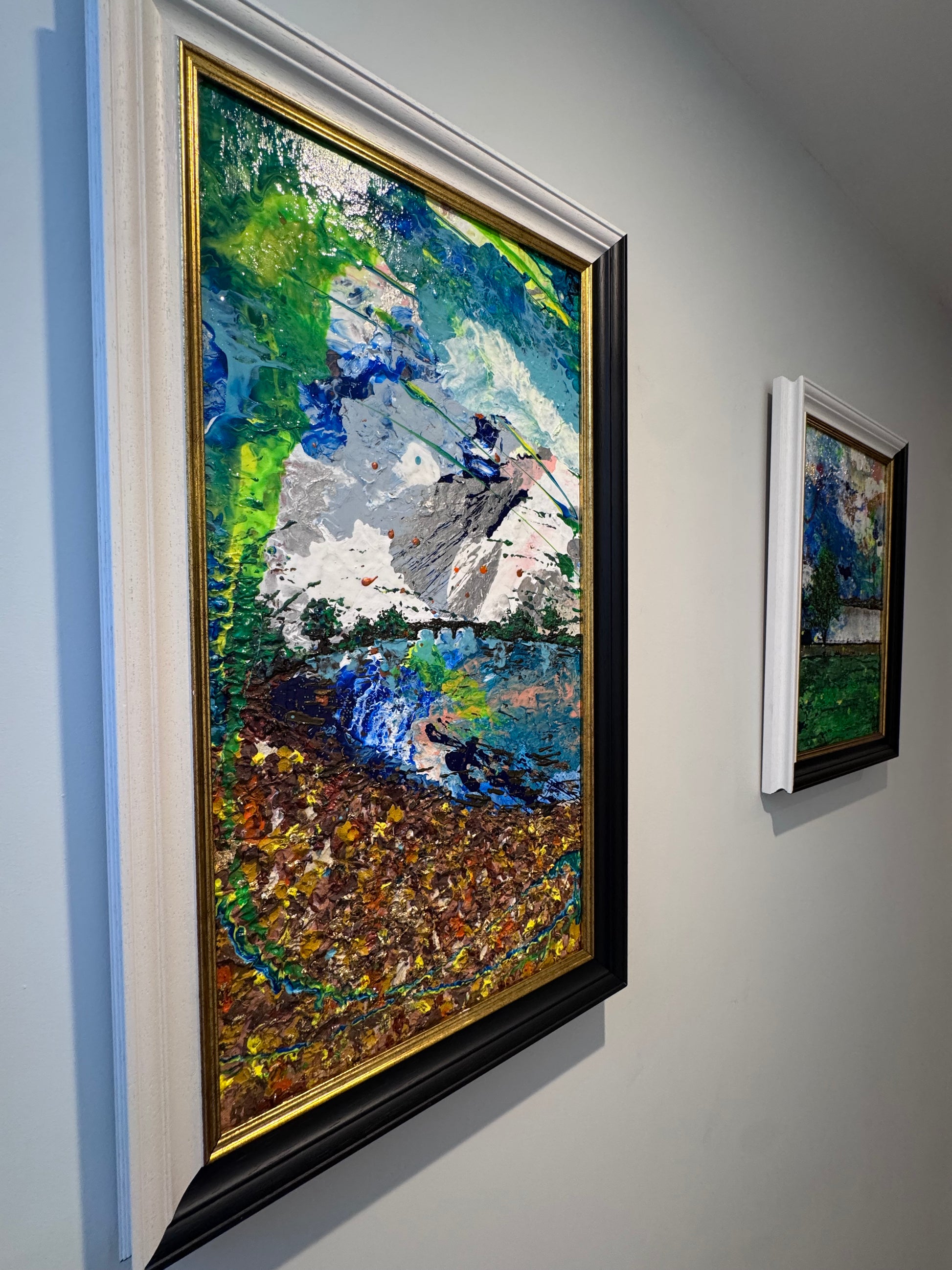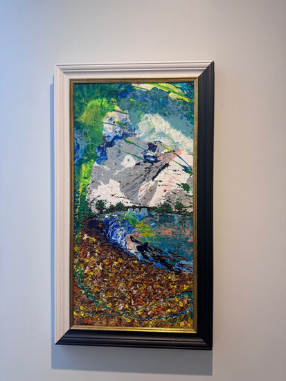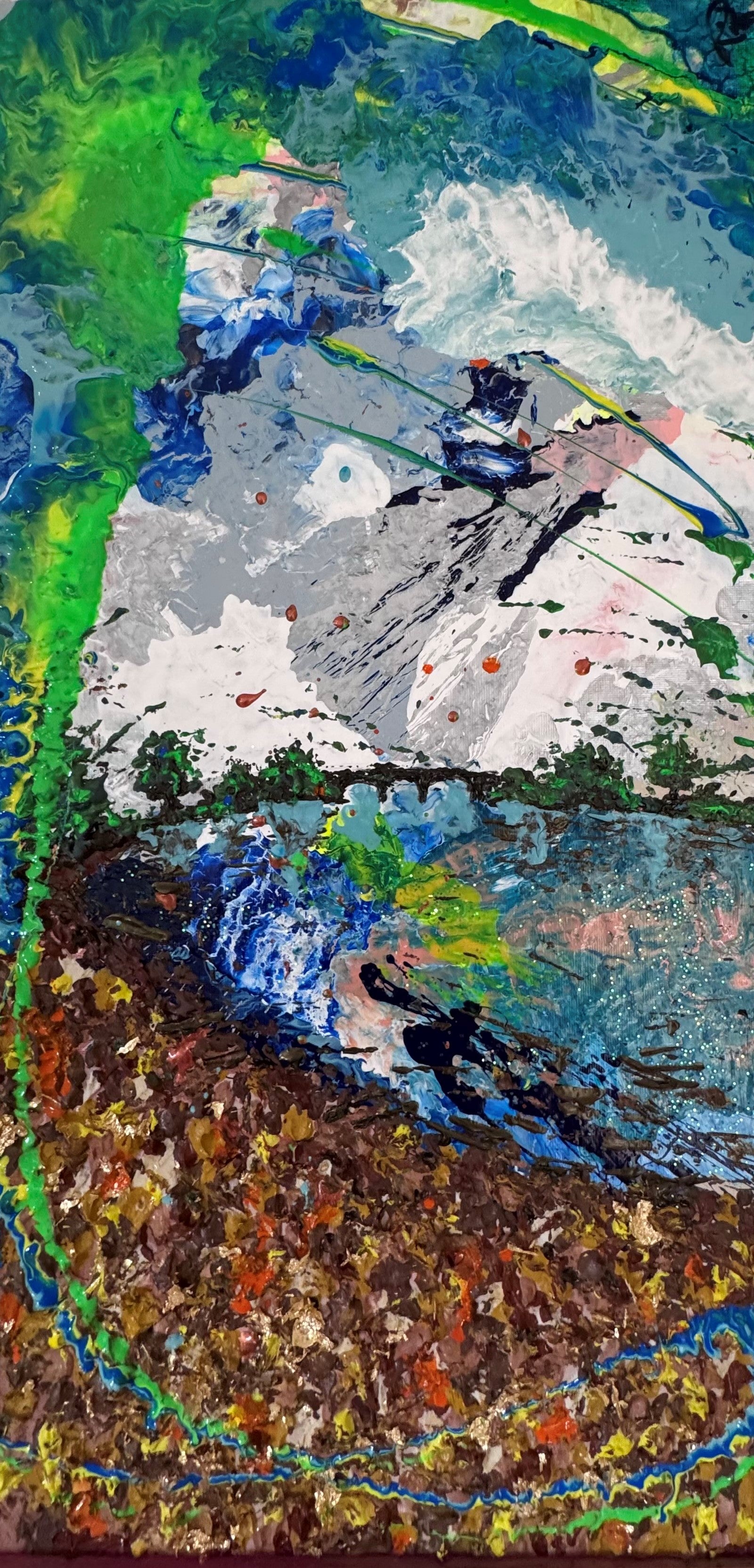 - Acrylic, pouring acrylics, pewter leaf, mixed medium