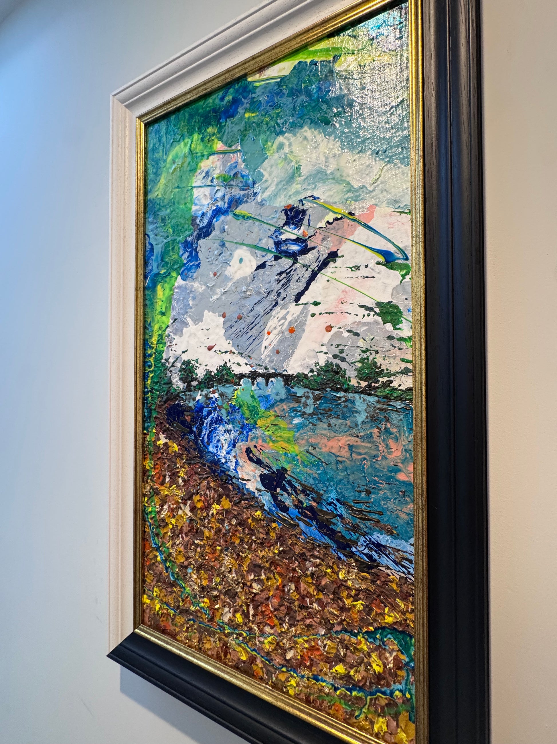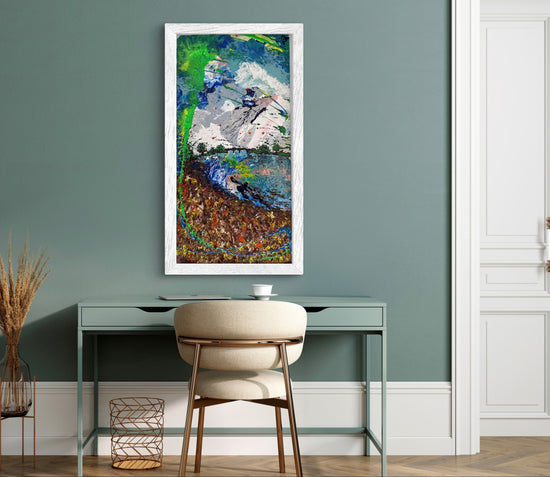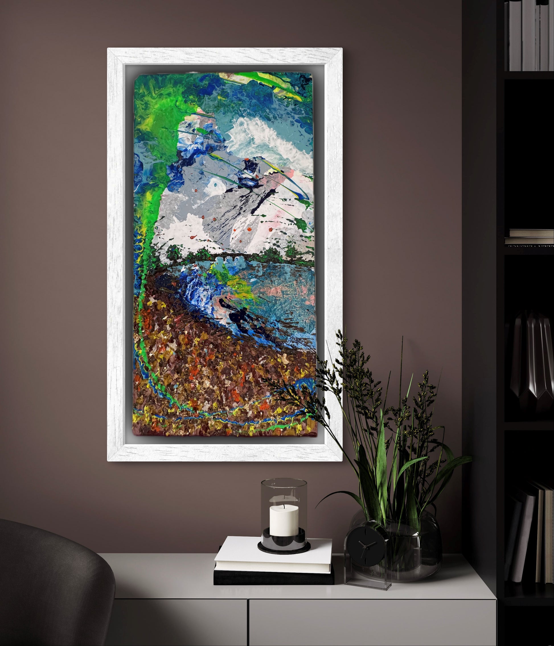 - Acrylic, pouring acrylics, pewter leaf, mixed medium