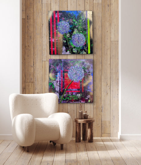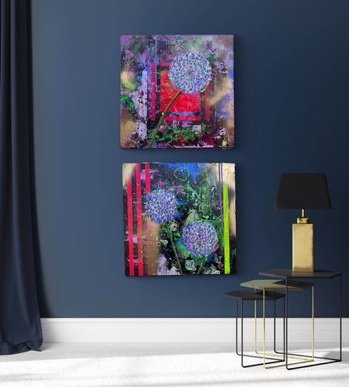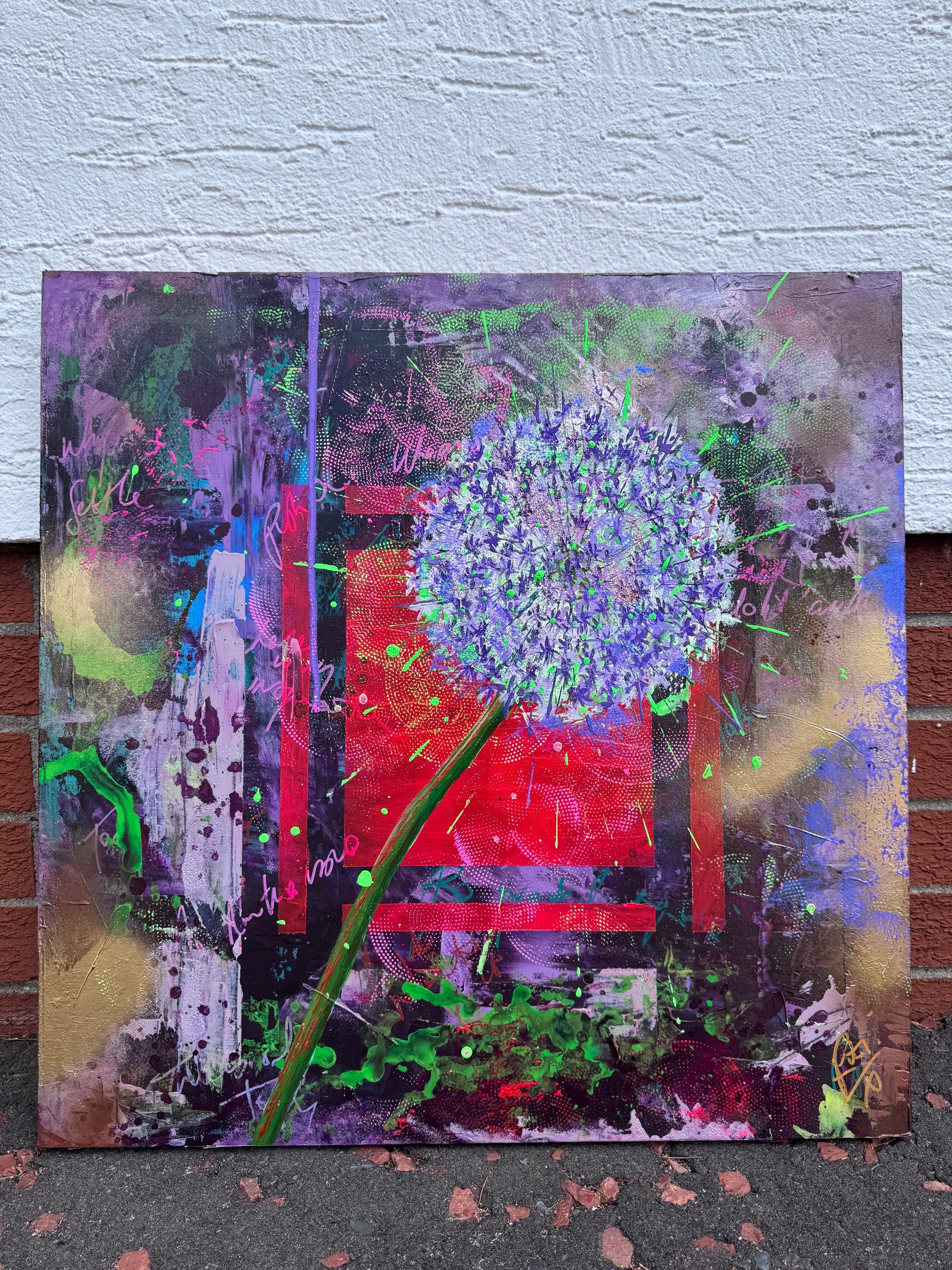 No Alliuments 1 & 2 are all about the freedom when I paint. These beautiful Allium flowers were gifted to me for my birthday, from both a close friend and two darling aunts…they know me well.