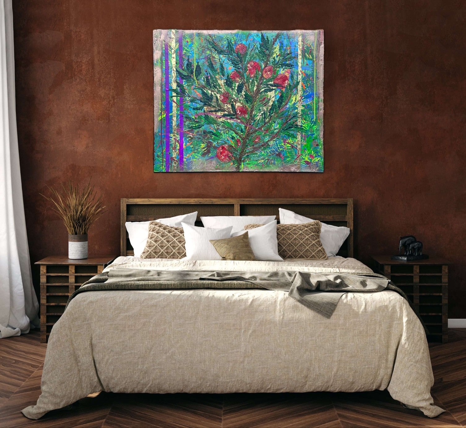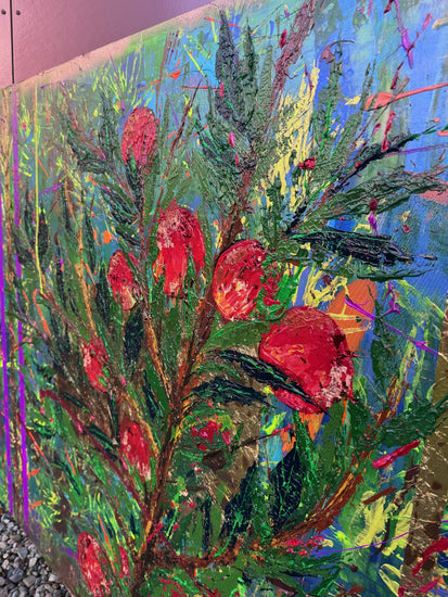 - Acrylic, spray paint, mixed medium
